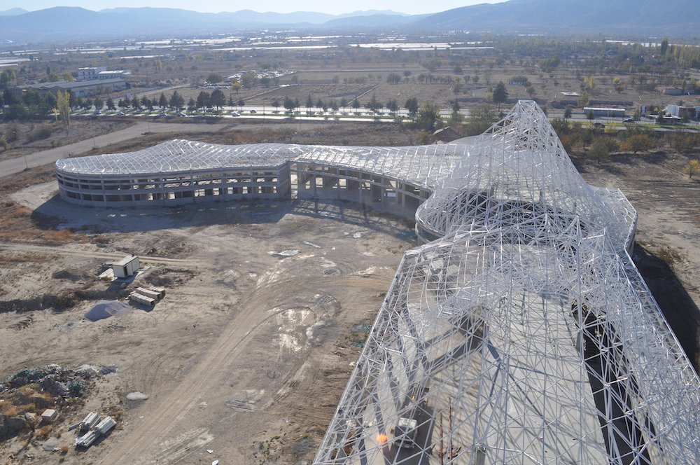 Kentin dağ silüetinden esinlenerek serbest formda gerçekleştirilen binanın özgün çatı konstrüksiyonu, esnek bir tasarım anlayışı ve uzay kafes yapı sistemlerinin uygulanabilirliği ile gerçekleştirilmiştir.